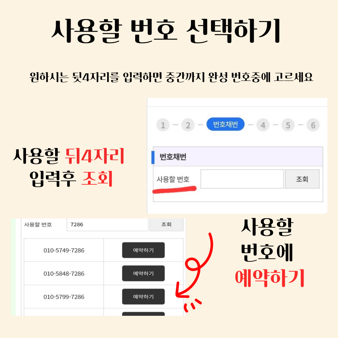 희망하는 휴대폰 뒷자리 입력 → 목록에서 선택