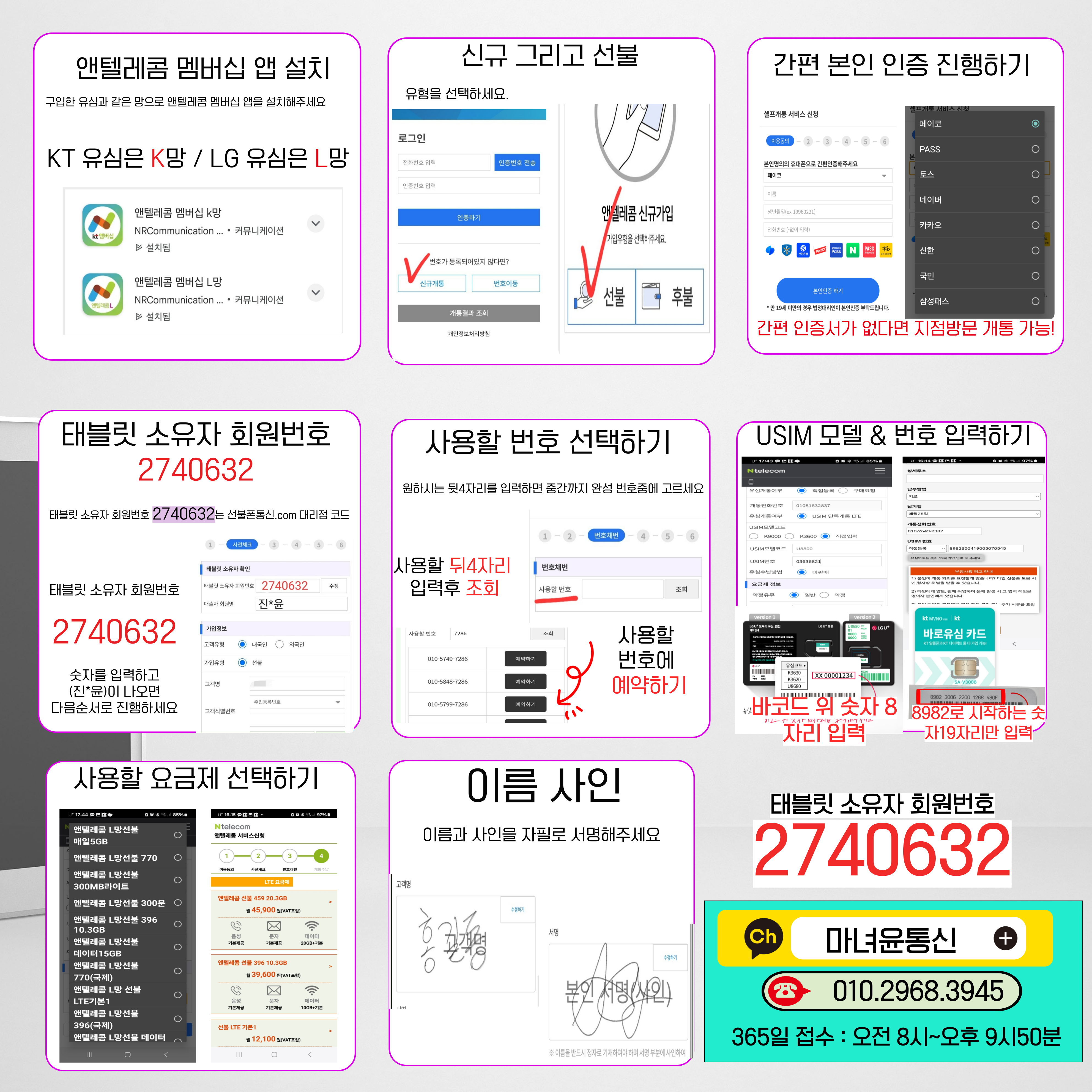 알뜰폰 선/후불 개통하는 마녀윤통신.com 태블릿소유번호 : 2740632 365일 온라인 셀프개통